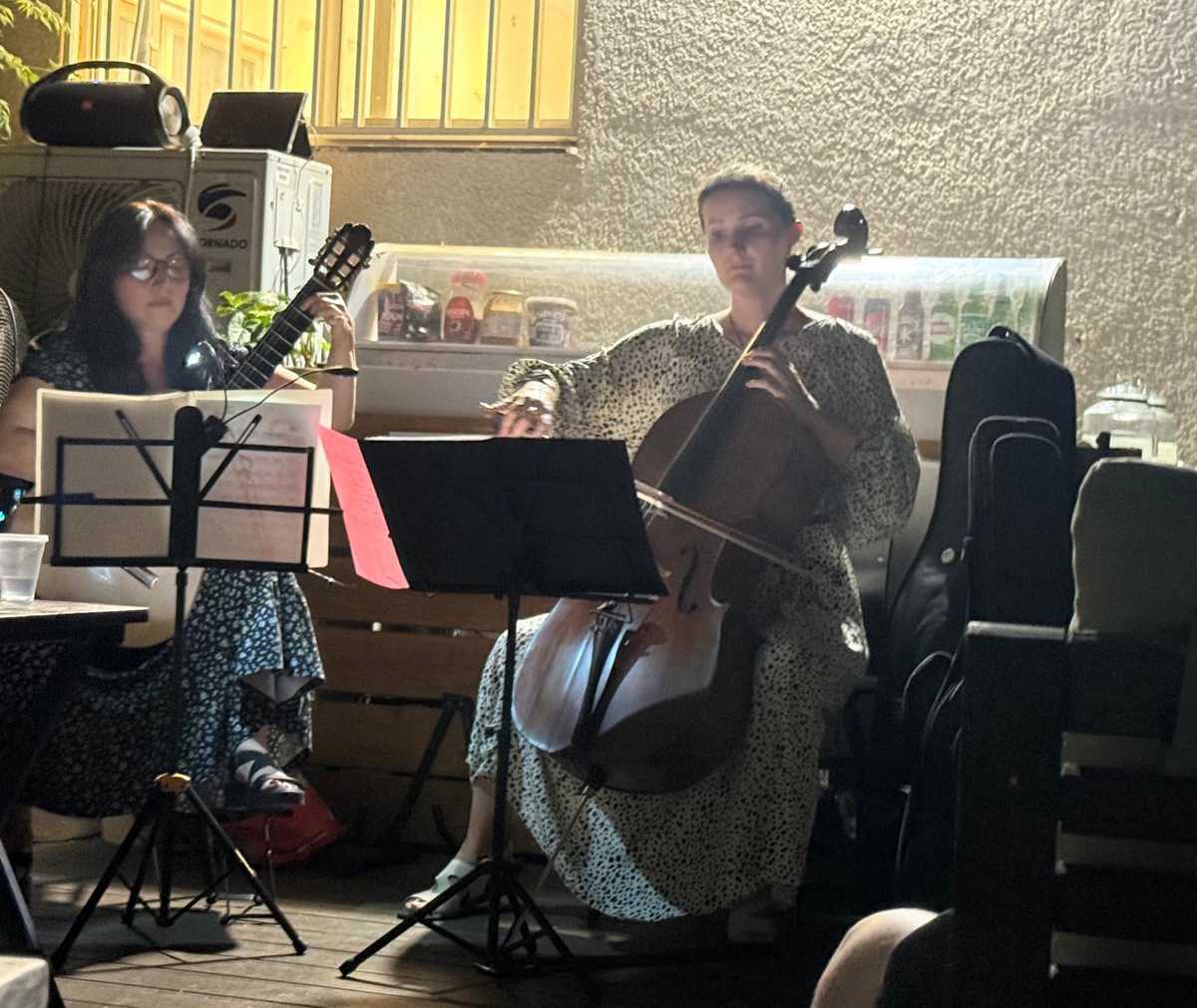 הופעה של דואט צ'לו וגיטרה בסגנון ספרדי דרום-אמריקאי. צילום צוות "ב'-קפה"