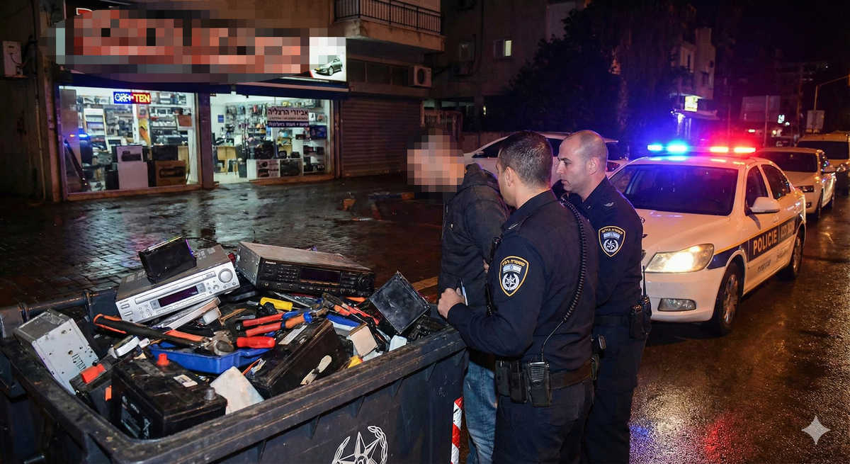 במהלך הסריקות בסמוך לבית העסק, הבחינו השוטרים באדם שעורר את חשדם. בבדיקה שערכו במקום, התגלה ממצא מפתיע: בתוך פח אשפה סמוך הוסלק ציוד רב, שכלל בין היתר כלי עבודה ומכשירים שונים, אשר על פי החשד נגנבו זמן קצר קודם לכן מהחנות הסמוכה.