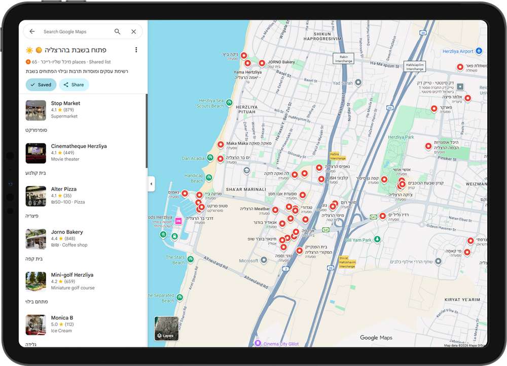מפת "פתוח בשבת בהרצליה" יצאה לדרך השבוע ביוזמת תושבים חילוניים. המפה הדיגיטלית, שמובלת על ידי מיכל שליו רייכר ממייסדות הפורום החילוני, מרכזת במקום אחד עסקי בילוי ופנאי הפתוחים בשבת בעיר. "העיר מתה בשבת", אומרת רייכר, "והיוזמה נועדה לאפשר לתושבים לנצל את הכוח הצרכני שלהם ולחזק עסקים הפתוחים בסוף השבוע". המפה עדיין בשלבי פיתוח ומתעדכנת באופן שוטף על פי הצעות התושבים.