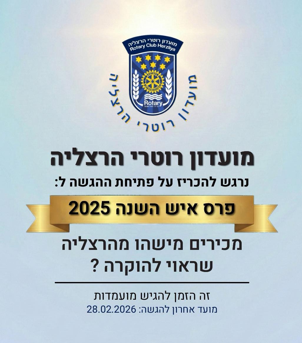 מועדון רוטרי הרצליה, המציין השנה עשור לפעילותו, פותח רשמית את דלתות ההגשה לפרס איש/אשת השנה 2025. זו הזדמנות ייחודית לתושבי העיר להכיר ולהוקיר את אלו שעושים את ההבדל – האנשים שתורמים לקהילה ופועלים למען אחווה, רעות ועזרה הדדית בעיר.