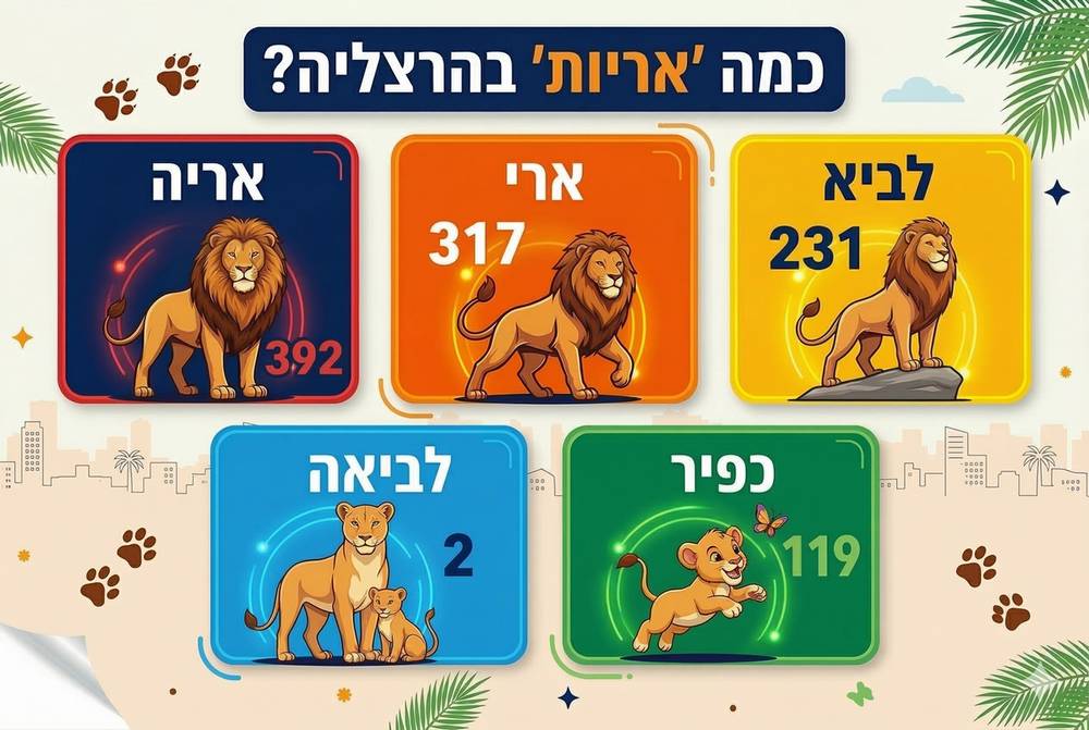 אנחנו בבוקר שמשי בהרצליה, לאחר לילה שני ברצף שכמה סבבים של אזעקות שלחו שוב ושוב משפחות שלמות למרחבים המוגנים, עם ילדים ישנוניים, הורים מתוחים והרבה פחות שעות שינה מהרגיל. בתוך המציאות המורכבות והלא פשוטה, ביקשנו לעשות אתנחתה קלה, אספנו את כל המספרים – כמה אריות, ארים, לביאים, לביאות וכפירים גרים בהרצליה, איך זה נראה בקנה מידה ארצי מאז "עם כלביא", ומה בכל זאת אפשר ללמוד מהשמות על הדורות בעיר וגם על החוסן המקומי, בין אזעקה לאזעקה.
