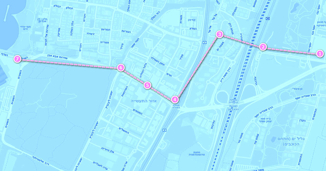לפי המסלול המוצע, “רכבל 7 הכוכבים” יכלול שבע תחנות ברורות, שמחברות בין תחנת הרכבת הארצית, מרכז המסחר, שכונת מגורים ותיקה, צומת תנועה עמוס, ציר התעסוקה הראשי והים.