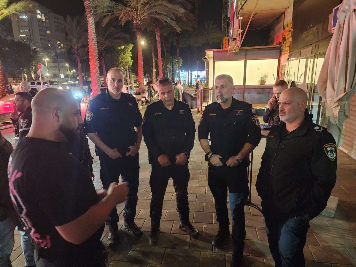 מפקד מחוז תל אביב, ניצב חיים סרגרוף, קיים הערכת מצב בזירת האירוע יחד עם מפקד מרחב ירקון, תנ"צ צחי שרעבי, ועם פיקוד המרחב. צילום: דוברות המשטרה