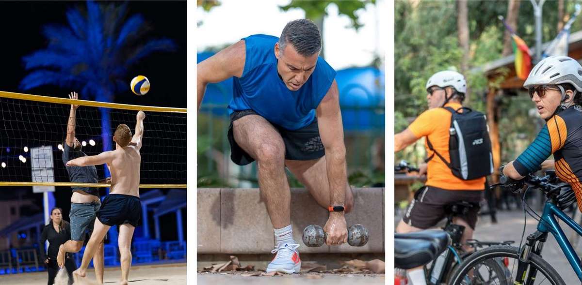 בין הפעילויות ניתן למצוא אימונים פונקציונליים, זומבה, רכיבת אופניים מודרכת, אימוני צ'י קונג, התעמלות בריאותית, הליכה נורדית, יוגה, קבוצות ריצה, פילאטיס, כדורעף חופים, כדורסל ועוד.